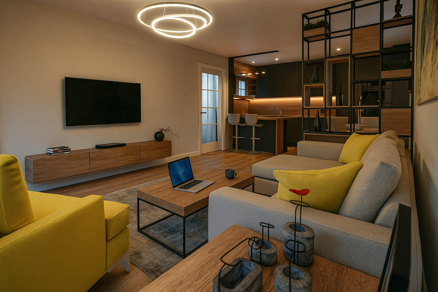 Besondere Highlights sind die veränderbare Beleuchtung für unterschiedliche Arbeitsstimmungen, mobile Möbel für flexible Raumkonfigurationen und ein begrünter Innenhof als Rückzugsort.